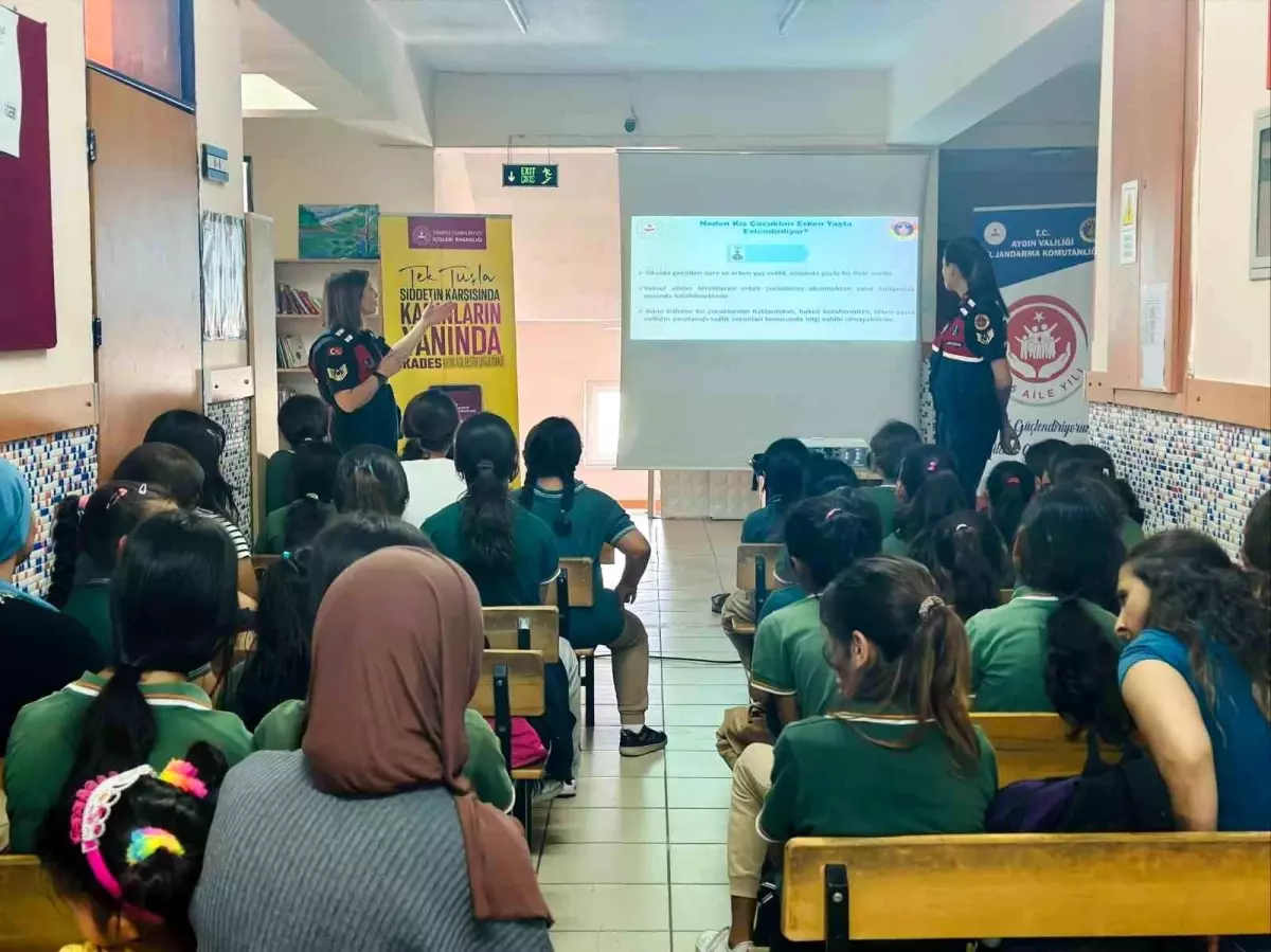 Aydın Vilayet Jandarma Komutanlığı Aile İçi Şiddetle Çaba ve Çocuk Kısım Amirliği ile Efeler İlçe Jandarma Komutanlığı takımları tarafından Efeler Yeniköy İlkokulu ve Ortaokulu’nda tahsil gören öğrencilere yönelik bilgilendirme faaliyeti gerçekleştirildi.