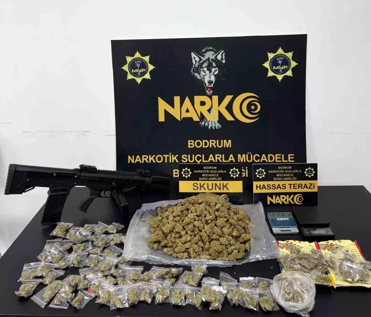 Bodrum Narkotik Hatalarla Çaba Ofis Amirliği takımları tarafından uyuşturucu tacirlerine yönelik operasyon yapıldı. Edinilen bilgiye nazaran operasyon kapsamında yapılan ikamet aramasında, 1 kilo 118 gram skunk hususu, 1 adet evraksız yivsiz av tüfeği, 2 adet hassas terazi ve bin dolar hatadan elde edildiği bedellendirilen para ele geçirildi. Yakalanarak gözaltına alınan 3 kuşkulu şahısda, süreçlerinin akabinde sevk edildiği isimli makamlarca tutuklanarak cezaevine gönderildi. – MUĞLA